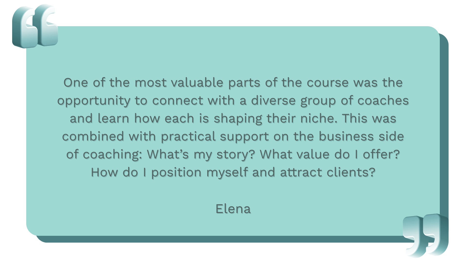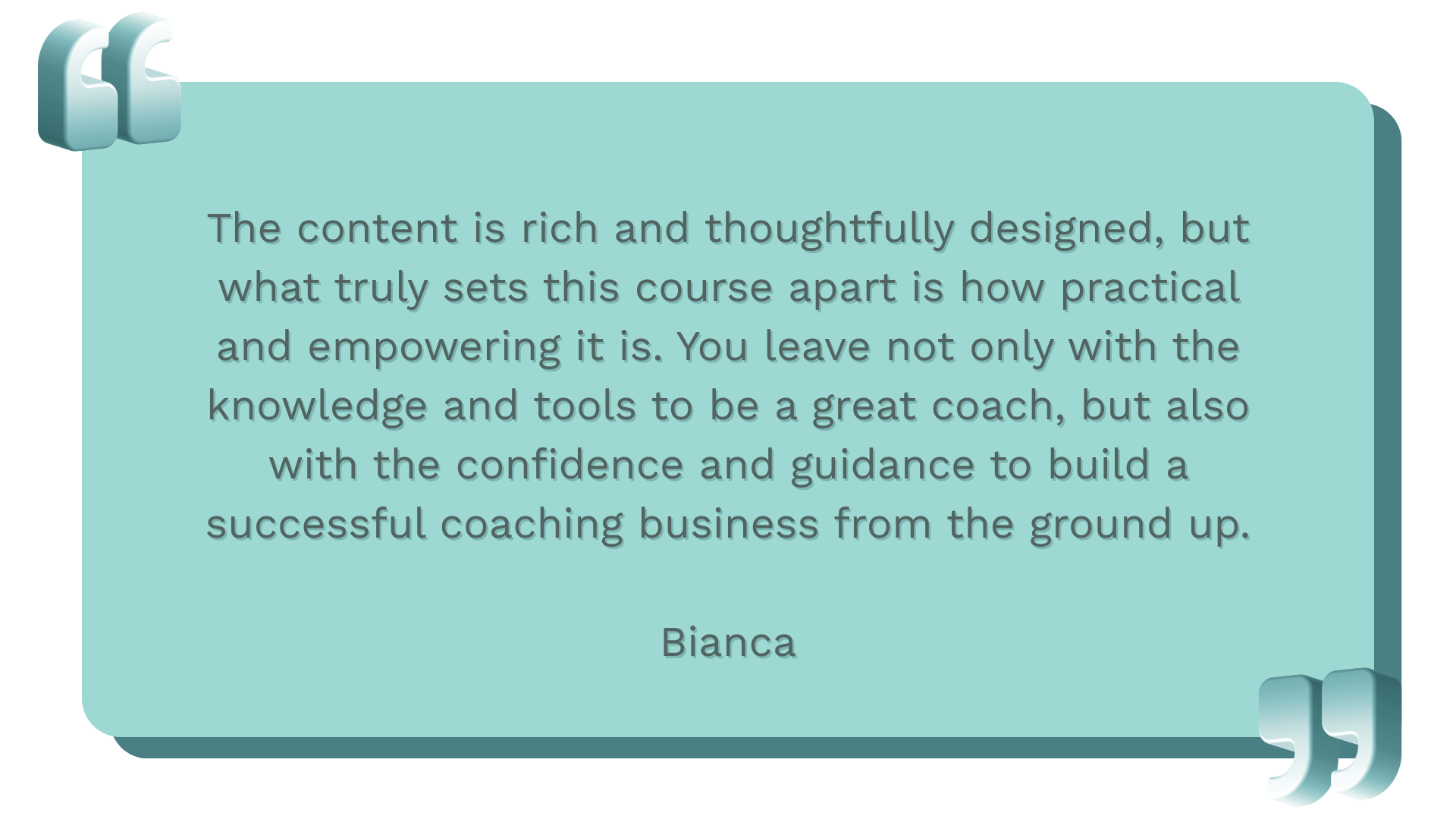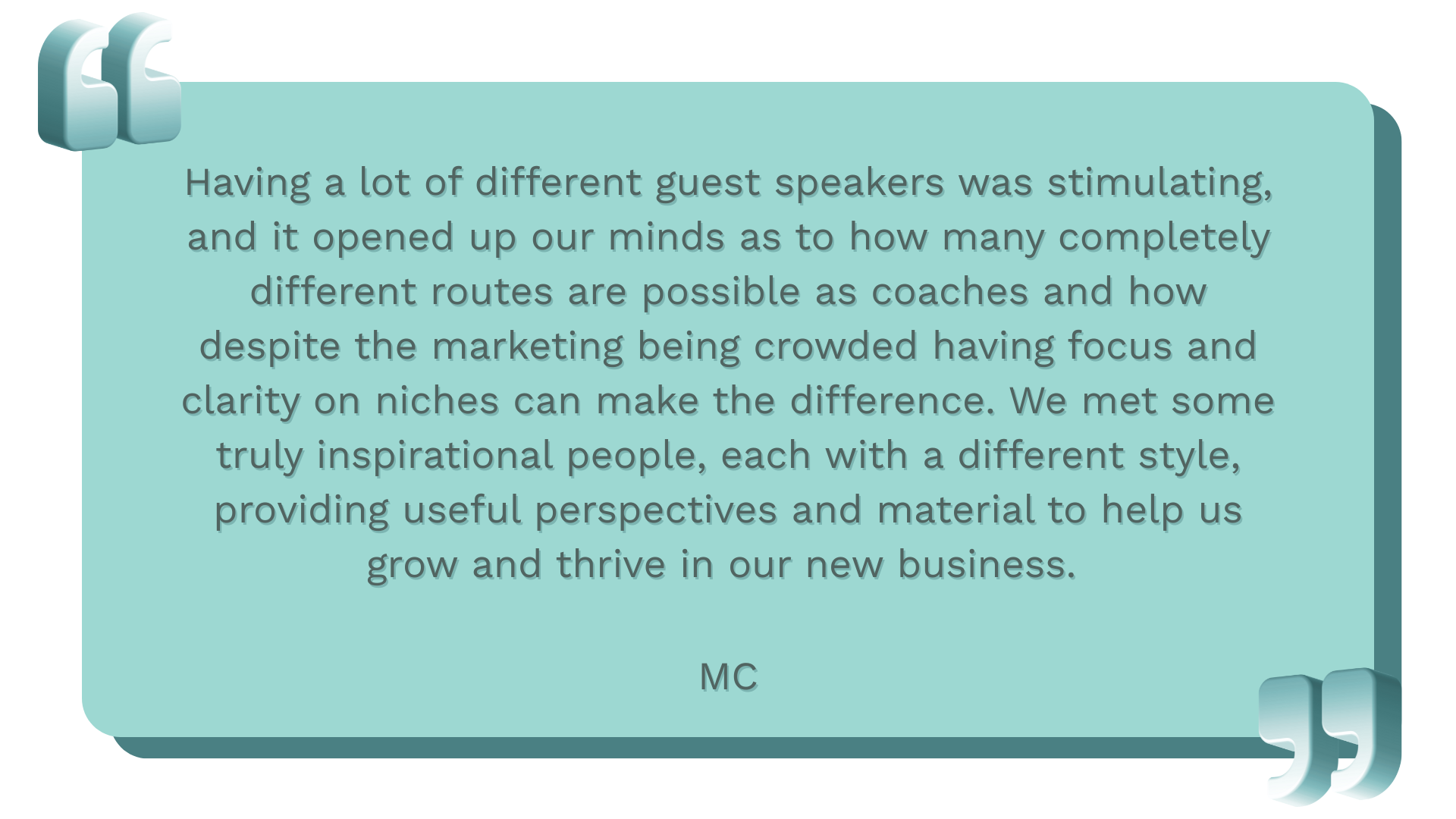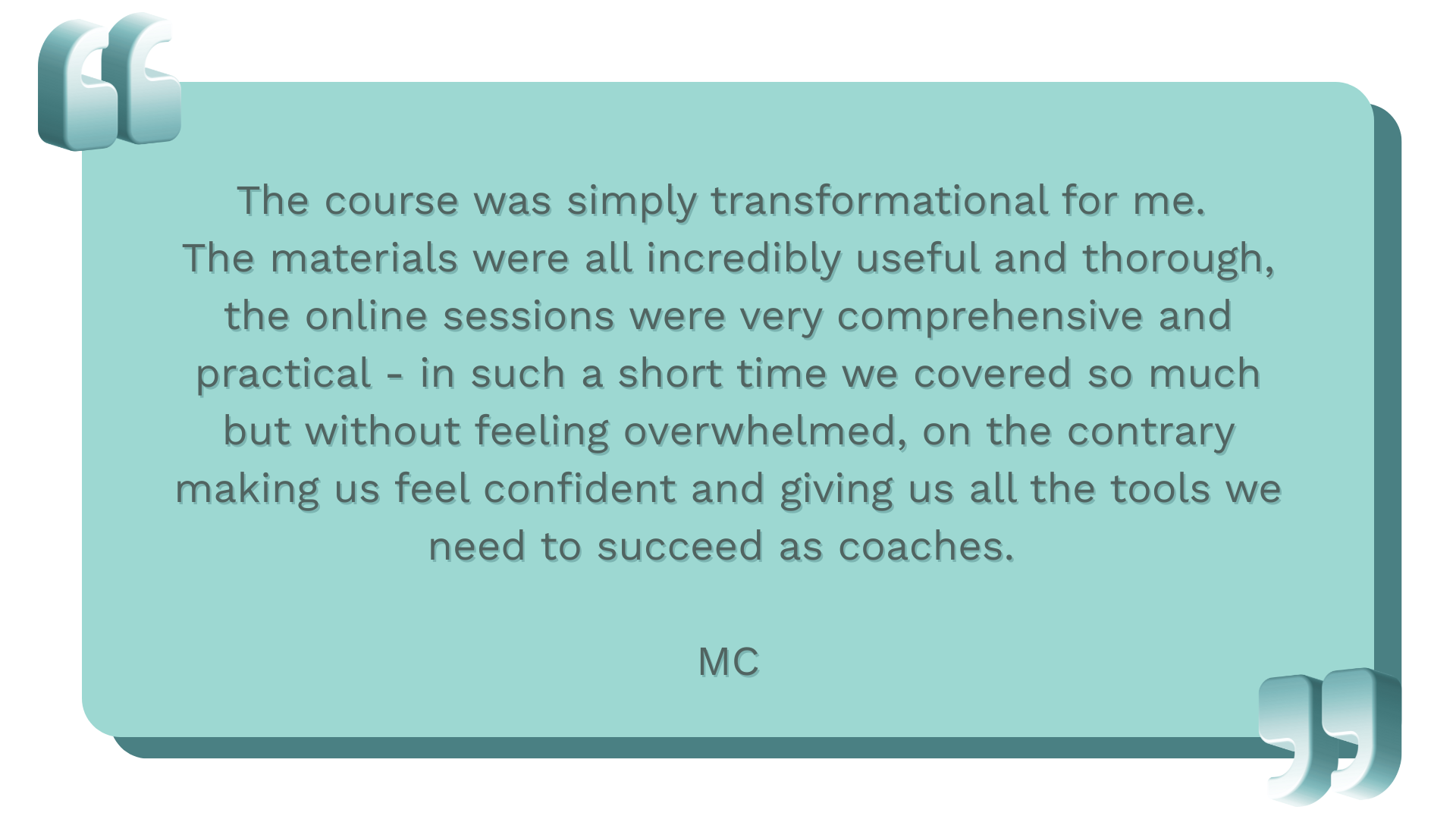 – Be coached by us while you’re learning to coach (this really is a 2 in 1 training)